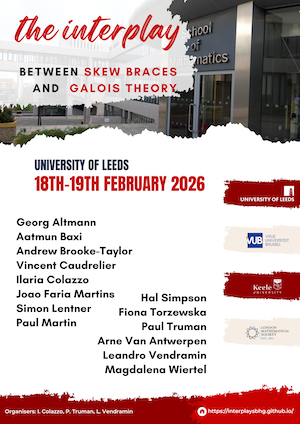 The main aim of these meetings is to explore this interplay between skew braces and Hopf–Galois structures. Each side has its own concrete problems, with possible applications to understanding the mathematical structures belonging to the other side.